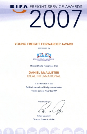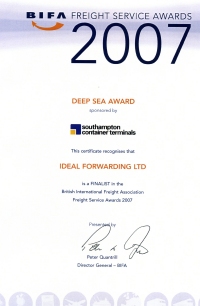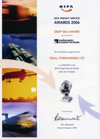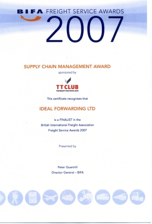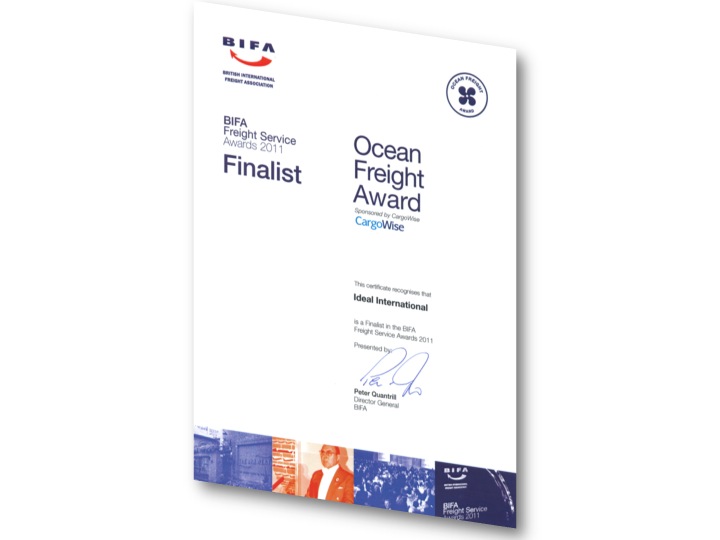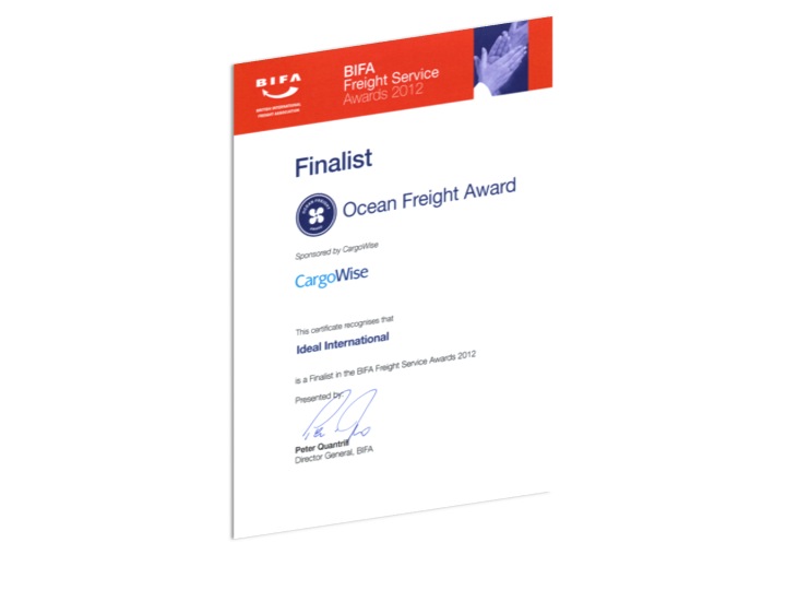 Our latest award is from BIFA as a finalisr in the Freight Service Awards 2012.